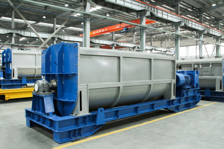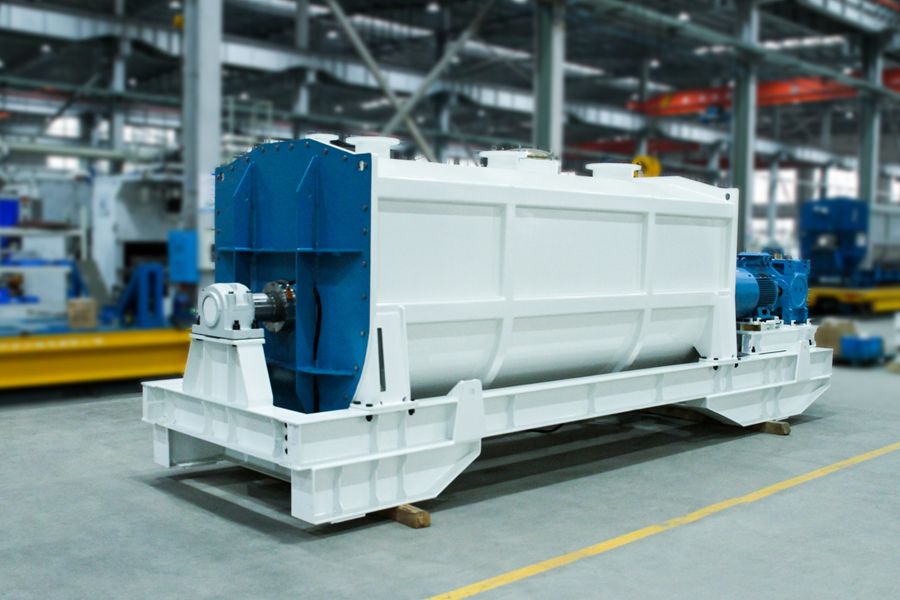 采用對稱連續螺帶,外螺帶將粉體輸送至卸料口,便于出料;內螺帶推送物料的方向與之相反,形成對流混合,加強混合效率。