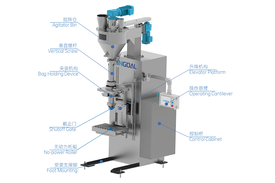 袋底喂料系統:物料從袋底開始充填,充填時袋子均勻下降,避免空氣的二次混入,最大限度減少物料的下落沖擊,揚塵小,保持環境整潔。